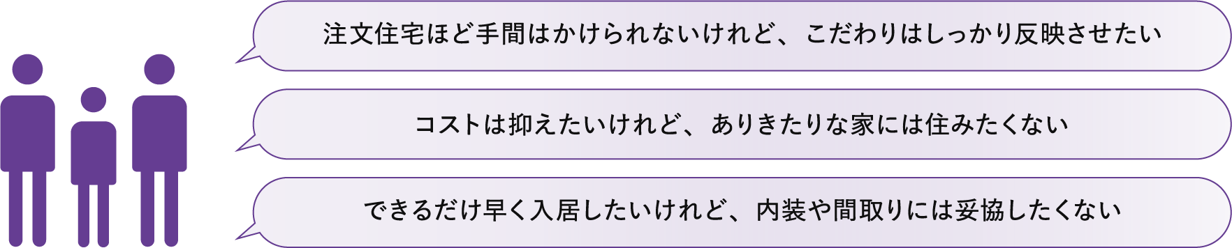 - 打合せに時間がかかり、住宅に関する知識が少ないと負担に感じやすい。